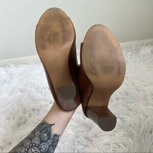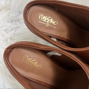 Massimo Brown Pleather Open-Toe Mule Heels - Size 7.5 - Great pre-owned condition with light scuffs see last 2 pics
