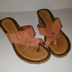 Massimo Caponi, slip on sandal, suede orange, floral accent, 9