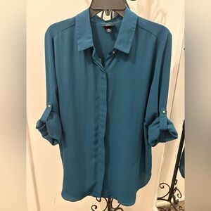 Elegant deep teal shirt with button-down design. Perfect for casual or formal wear. In good condition.