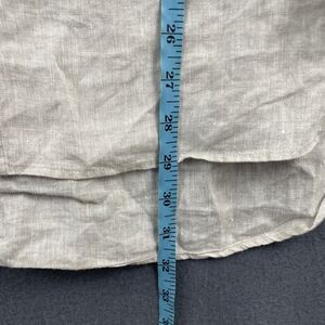The Massimo Dutti Beige Linen Oversized Minimalist Organic Natural Button Up Blouse is a versatile and stylish top perfect for casual occasions. Made from 100% linen, this lightweight and breathable blouse features a V-neckline, button closure, and long sleeves with a casual sleeve type. The relaxed fit and organic, minimalist design make it ideal for summer and spring seasons. With a solid beige color and a touch of European charm, this blouse exudes a timeless elegance suitable for a variety of settings.