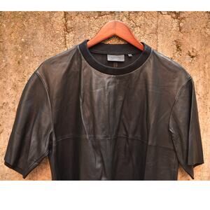 Massimo Dutti Black 100% Leather Short Sleeve Top Size L