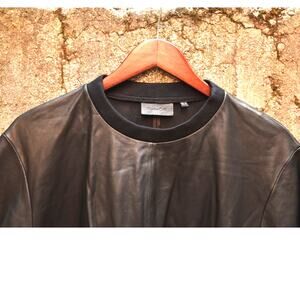 Elevate your wardrobe with this sleek and luxurious Massimo Dutti black leather short sleeve top. Crafted from 100% genuine sheep leather, this piece combines edgy style with timeless sophistication. Featuring a minimalist design with clean seam detailing and a soft round neckline, it’s perfect for pairing with tailored pants, skirts, or denim for a bold yet versatile look.