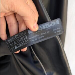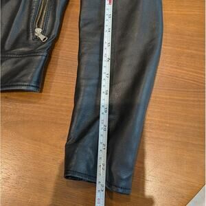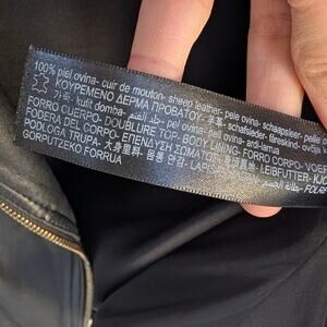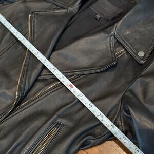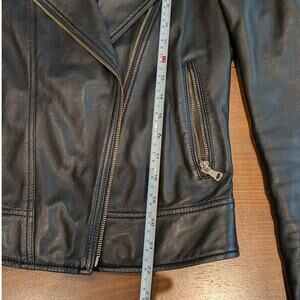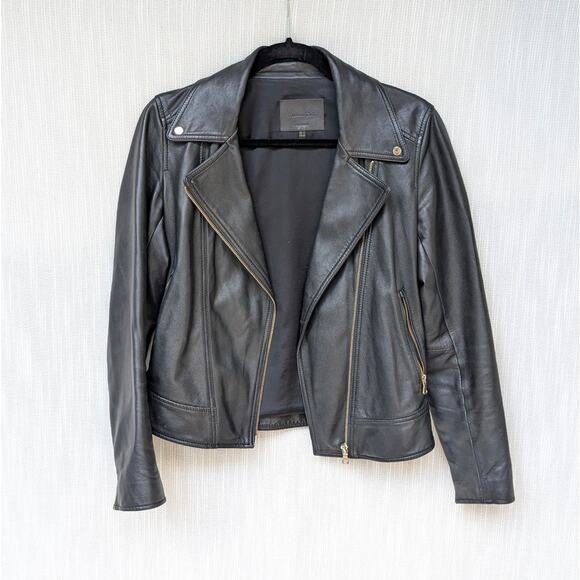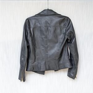 Massimo Dutti Black Leather Full Zip Long Sleeve Biker Jacket, size XS