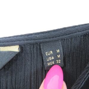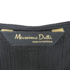 Massimo Dutti Black Long Sleeve Peasant Dress. Long Sleeve Bishop Sleeve V-Neck Dress with Neck Tie.