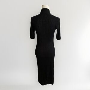 Massimo Dutti Black Maxi Dress M Mock Neck Rib Knit Side Slit Minimalist Chic