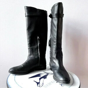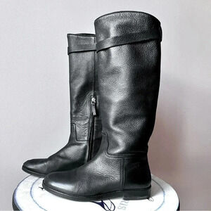 Massimo Dutti Black Pebbled Leather Women’s Knee High Riding Boots EU 37 US 6.5