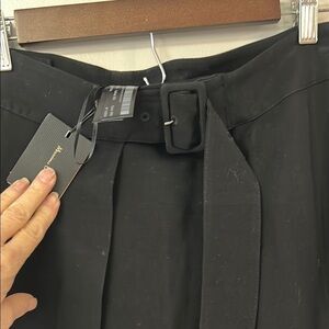 Massimo Dutti Black Pencil Midi Skirt Belted Front