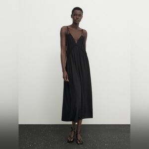Massimo Dutti Black Sleeveless Open-Back Flowy Maxi Dress Sexy Quiet Luxury