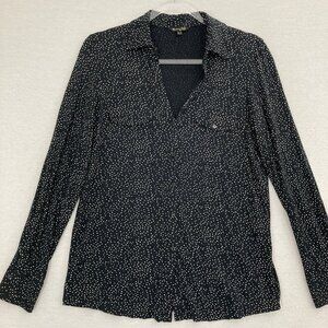 Massimo Dutti Black White Polka Dot Relaxed Long Sleeve Button Down Small