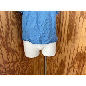 Massimo Dutti Blouse Pullover Top Flutter Sleeve Keyhole Chambray Blue Size 2