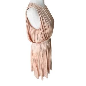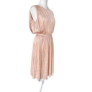 Massimo Dutti Blush Rose Pink Pleated Dress Size Medium Halted Midi Satin