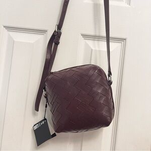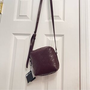 Massimo Dutti Braided nappa leather bucket bag, Burgundy