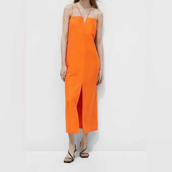 Massimo Dutti Bright Orange Strappy Linen Dress, NWT