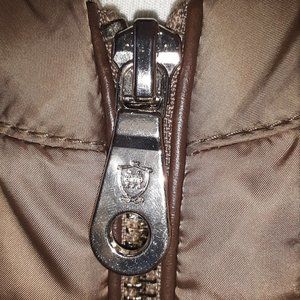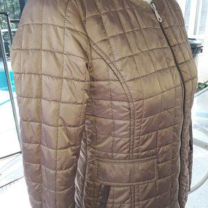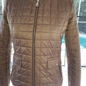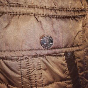 Massimo Dutti Brown Nylon Quilted Collarless Bomber Jacket