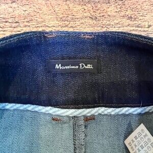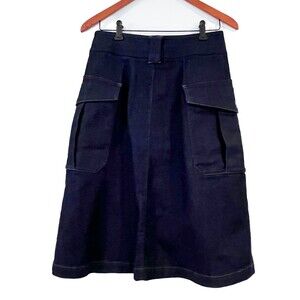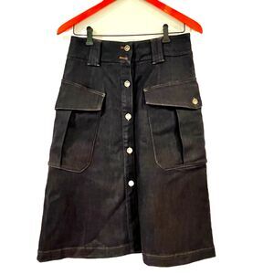 Massimo Dutti Calidad Denim Jean Midi A-Line Button Front Skirt Size 8