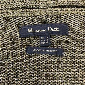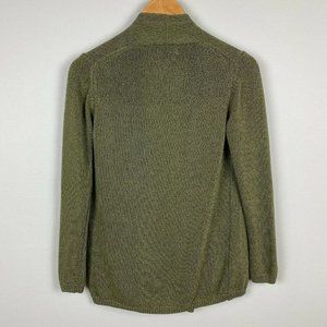 Massimo Dutti Cardigan Sweater Small Green Open Front Knit Long Sleeve Womens