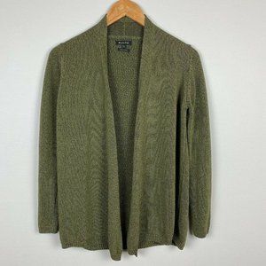 Massimo Dutti Cardigan Sweater S Green Open Front Knit Long Sleeve Women's Small