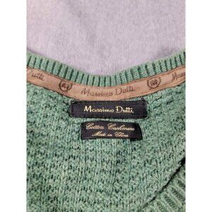 Massimo Dutti Cotton & Cashmere Green waffle knit sweater, men's Medium Green