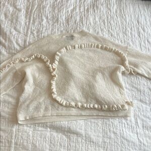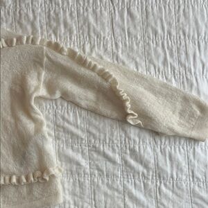 Stylish cream sweater with ruffle details. Perfect for a chic look.