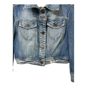 Massimo Dutti Stone washed crop Blue Denim Jacket Size XS. Some distress areas