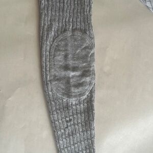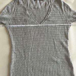 Massimo Dutti Gray Cable-Knit Patched Elbows V-Neck Cotton-Wool-Cashmere Sweater