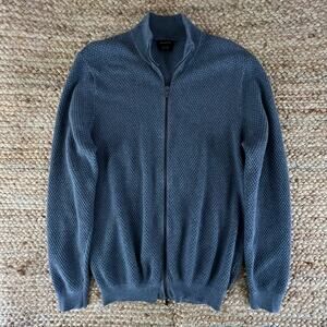 Massimo Dutti Gray Cashmere Cotton Zip Sweater XL Designer Textured Knit Jacket