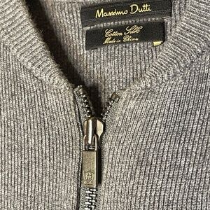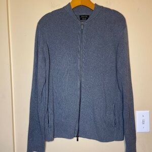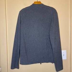 Stylish gray jacket. Full zip closure. Ribbed texture. Perfect for layering.