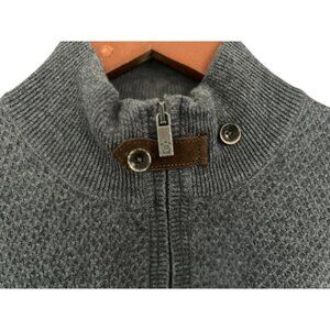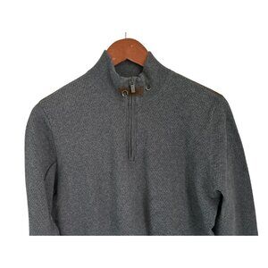 Massimo Dutti Gray Quarter-Zip Sweater Mens L Cotton & Cashmere Blend With Suede