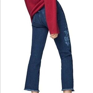 Massimo Dutti High Waisted Floral Embroidered Cropped Jeans 6