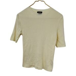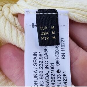 Massimo Dutti Italian Yarn Ribbed 1/2 Sleeve Sweater Top Pale Yellow Medium