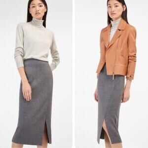 Massimo Dutti Knit Midi Skirt Navy Blue High Rise Side Slit Sweater Pull On. Knit sweater skirt. Side slit detail. Pencil skirt style. Pull on stretchy waist, elastic waist. Perfect to dress up for work or wear with a t-shirt and sneakers!