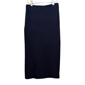 Massimo Dutti Knit Midi Pencil Skirt Navy Blue Side Slit Sweater Pull On Small