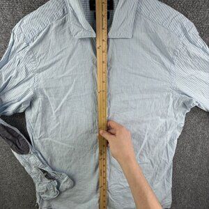 Massimo Dutti LG Button Up Long Sleeve Cotton Linen Blue Striped Finest Fabric