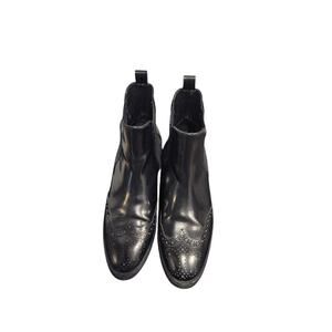 Massimo Dutti Leather Ankle Boots Oxford Women's Sz 8/39 Black Brogue Wingtip