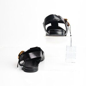 Massimo Dutti Leather Cage Sandals Flats Buckle EU 39 US 8 Black 1568/150 NWT