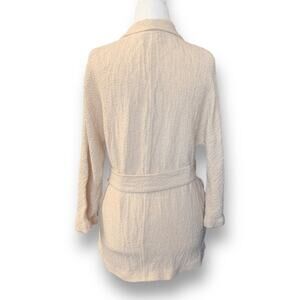 Massimo Dutti Linen Open Front Belted Knit Cardigan Sweater Neutral Cream Small