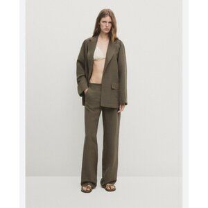 Massimo Dutti Linen Pants EU 40 US 8 Olive Green Wide Leg Trousers 5072/904 NWT
