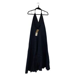Massimo Dutti Linen Strappy Midi Dress Navy Blue Size XS Open Back 6620/100 NWT