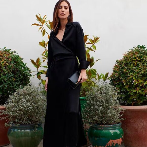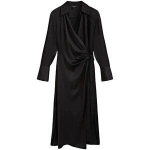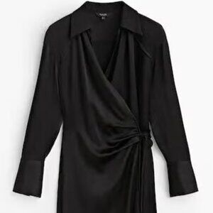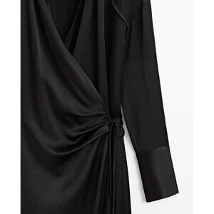 Massimo Dutti Maxi Wrap Black Satin Shirt Dress Size XS New With Tags