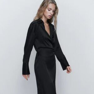 The black shirtdress style and satin fabric by Massimo Dutti, a classic that never fails and looks amazing.