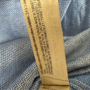 Massimo Dutti Men's 2XL Blue Herringbone Button-Up Shirt Long Sleeve Cotton