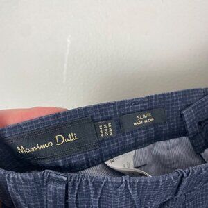 Massimo Dutti Men's 38X28 Cropped Navy Blue Micro Plaid Trouser Pants Careerwear