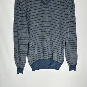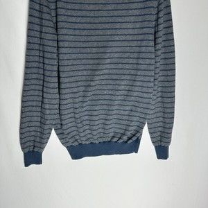 Massimo Dutti Men's Cotton Cashmere Blend Sweater Size L (40) Gray Blue Striped