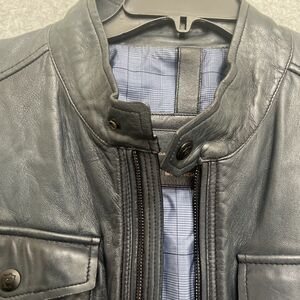 Massimo Dutti Mens Sheepskin Leather Jacket Large Deep Blue Motorcycle Biker