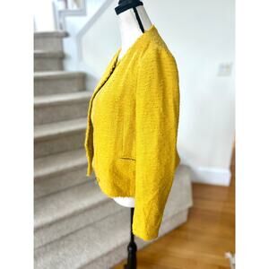 Massimo Dutti Mustard Yellow Boucle Tweed Fringe Blazer