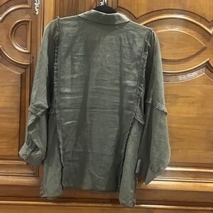 Massimo Dutti Olive Green Long Sleeve Oversize Shirt Size Small