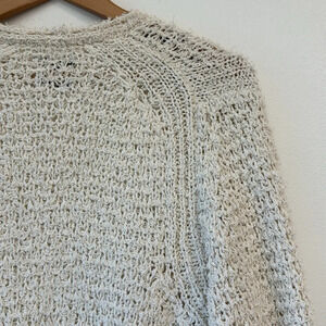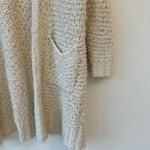 Massimo Dutti Open Knit Mesh Cream Long Sleeve Cardigan Duster Side Pockets Med