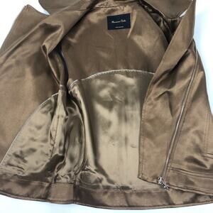 Rich caramel tan color with silver tone zipper , 100% viscose. 2 pockets in front , fully lined