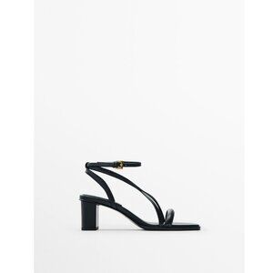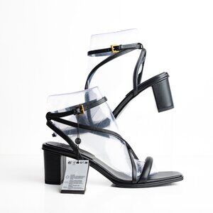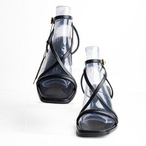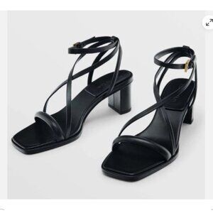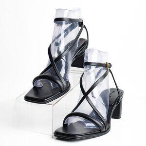 Massimo Dutti Strappy Leather Block Heel Sandals EU 40 US 9 Black 1602/250 NWT