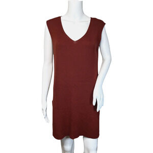 Massimo Dutti Sweater Women Large Rust Red Ribbed Shirt Casual Neutral Minimalst